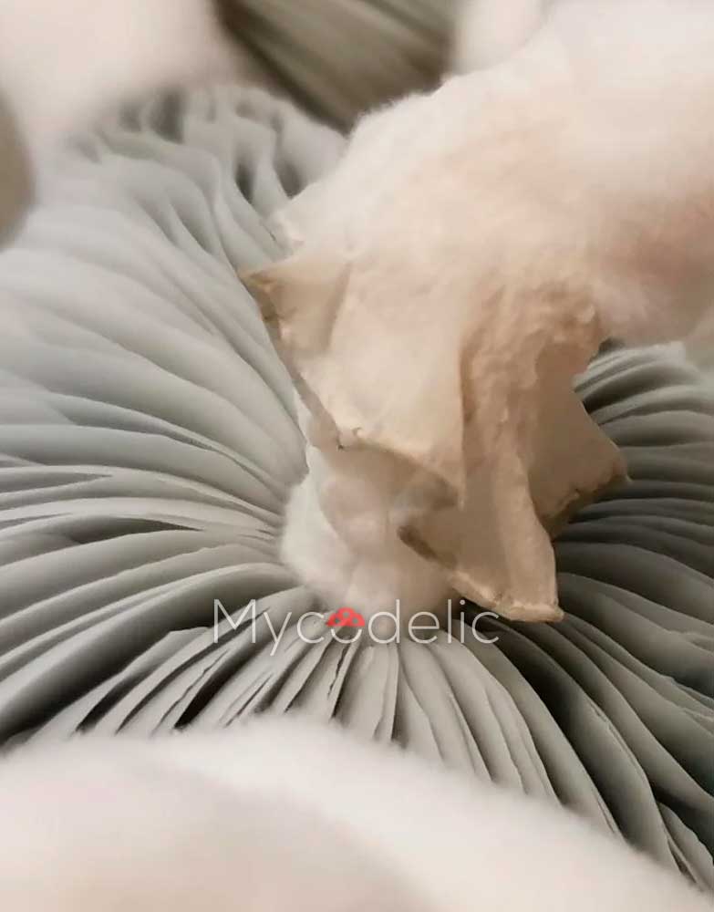 Cepa inusual con esporulación dorada y desarrollo morfológico llamativo. Golden Halo combina cuerpos grandes, sombreros definidos y una característica distintiva: deposita esporas de tono dorado en lugar del típico púrpura oscuro. Su crecimiento es estable, vigoroso y visualmente impactante.